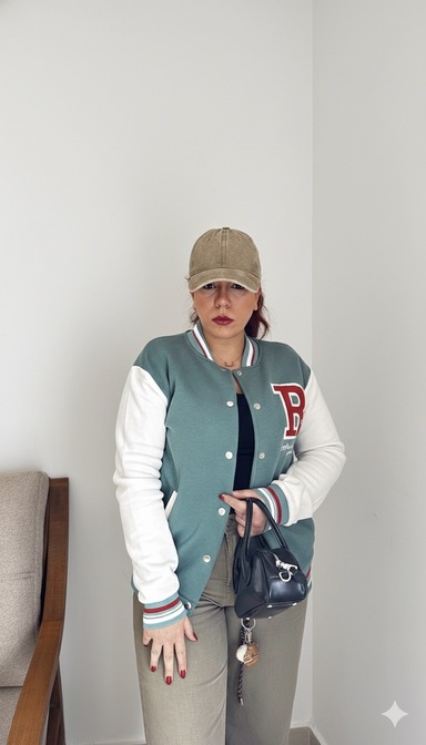 ژاکت زنانه کرکی “آلویز ریدی” – گرم و شیک برای زمستانژاکت زنانه کرکی با طراحی کلاسیک ورسیتی (سبک ژاکت ورزشی دانشگاهی با لوگوی برجسته) – ایدهآل برای خانمهایی که به دنبال ژاکت گرم زمستانی راحت و استایلدار هستند. بدنه سبز رنگ با آستینهای سفید کنتراستدار، یقه و لبههای قرمز-سفید، و لوگوی “R” با نوشته “Always Ready” برای ظاهری جسورانه تولید شده است.